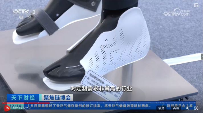 第三日,央視財(cái)經(jīng)頻道《天下財(cái)經(jīng)》欄目將鏡頭對(duì)準(zhǔn)盈普展臺(tái),聚焦3D打印支具的醫(yī)療臨床應(yīng)用。采訪中,現(xiàn)場(chǎng)展示了支具的“貼合曲線”與“輕盈透氣”等定制化特性。節(jié)目已于7月19日在央視新聞網(wǎng)播出。